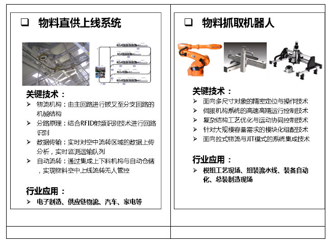針對智能制造環(huán)境下裝備智能化需求,研發(fā)探傷與檢測機器人,物料(SMT電子物料、電極、刀輔具等)倉儲與分揀機器人,AOI檢測設(shè)備、LCR檢測設(shè)備、物料直供上線裝備,以及制造裝備的M2M智能化改造,包括CNC、EDM、CMM等裝備的智能化改造。