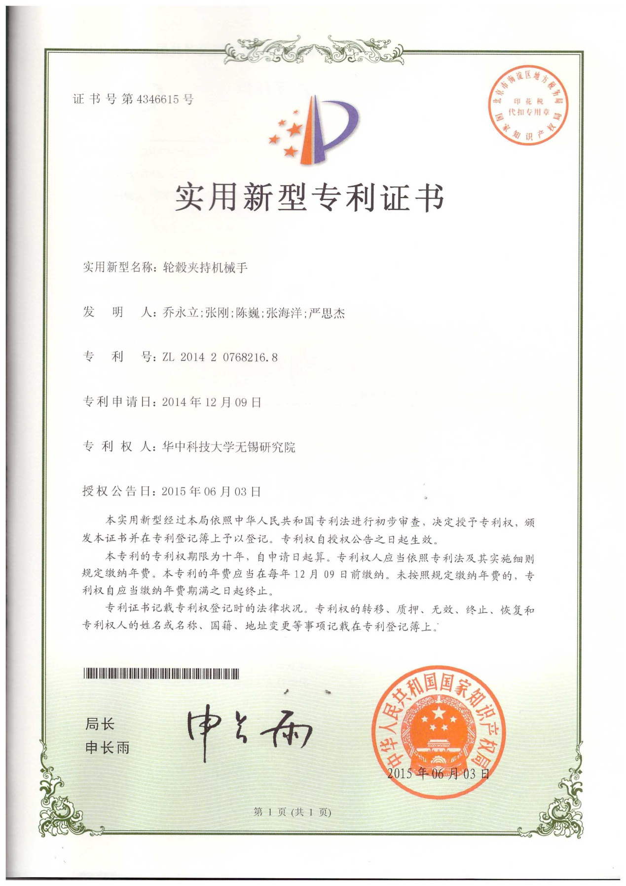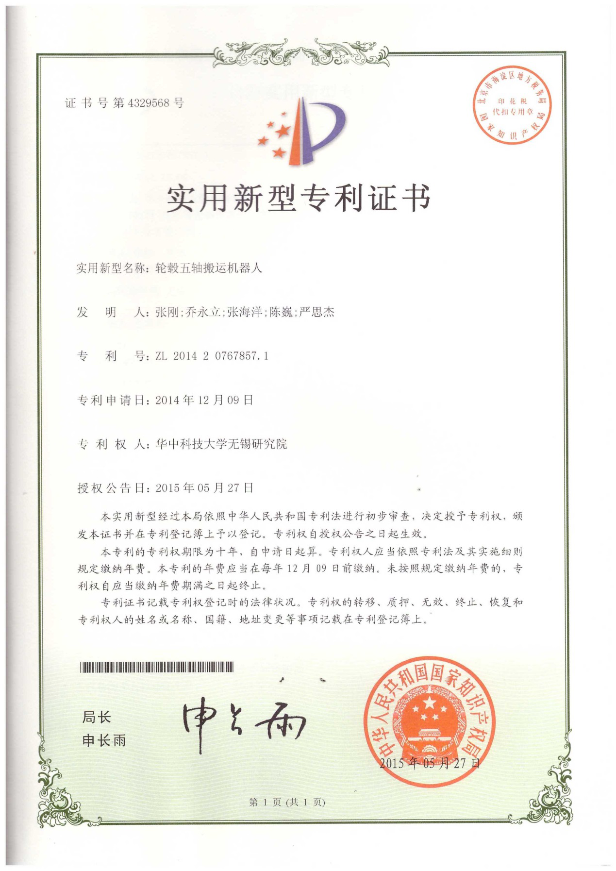 (3) 輪轂五軸搬運(yùn)機(jī)器人及夾持機(jī)械手,申請(qǐng)?zhí)?/span>: 201410745341.1