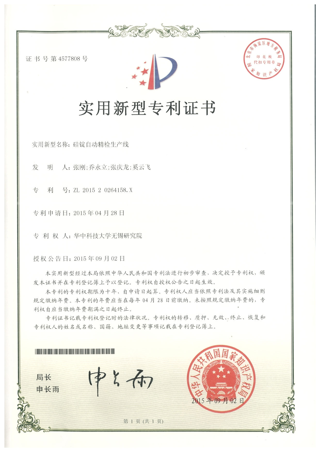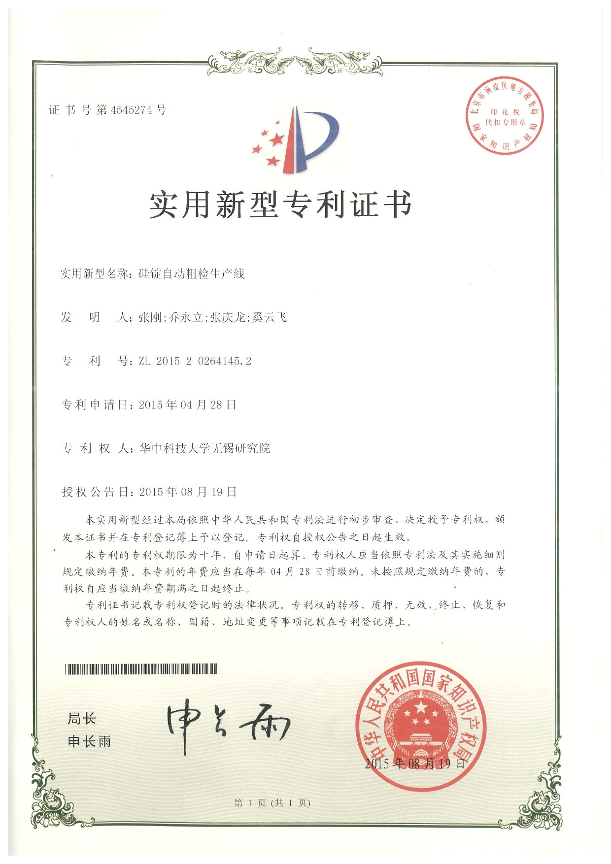 (1) 硅錠自動(dòng)粗檢生產(chǎn)線,授權(quán)號(hào): ZL201510207503.0